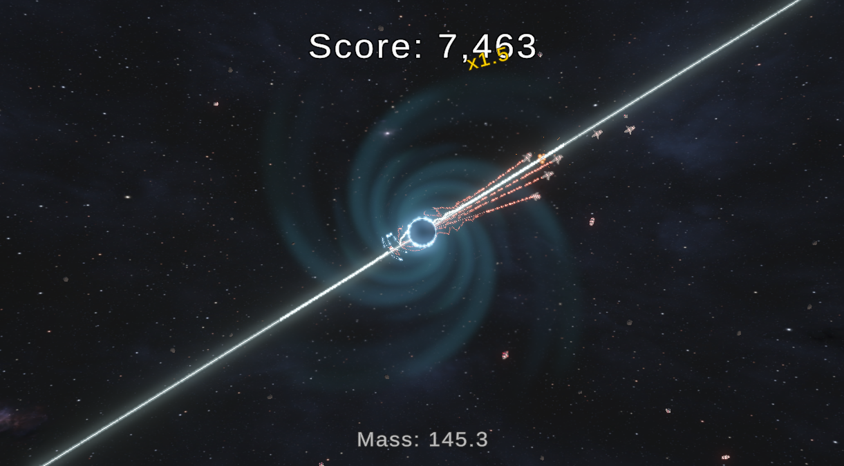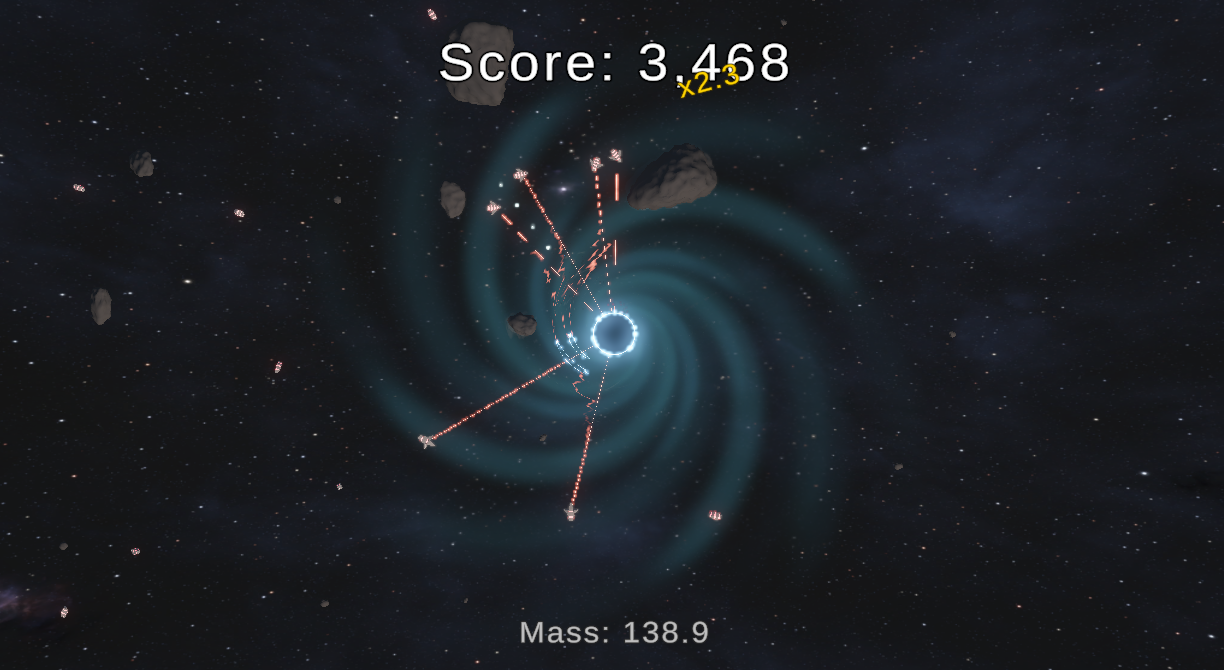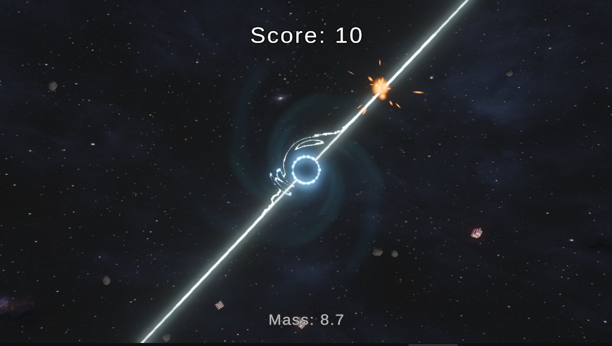 Unfortunately, I had to remove the really cool distortion shader I made for the black hole (You can kind of see it in the screenshots) because it didn't work in the browser. Oh well, it still looks decent